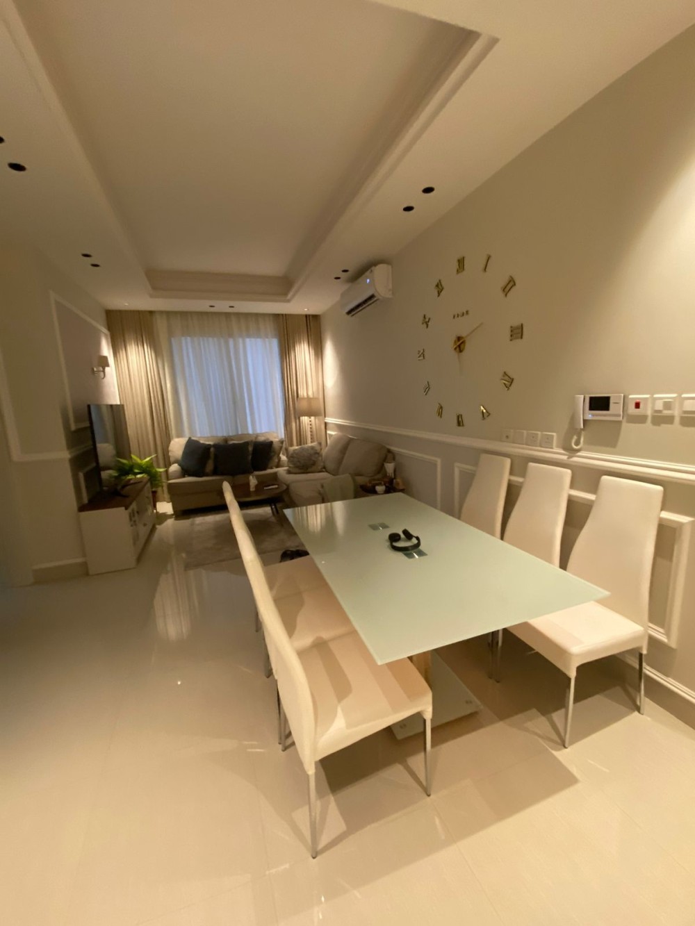 تحتوي على 3 غرف نوم واحدة ماستر روم بجاكوزي ، صالة ، مطبخ ، مجلس ، 3 دورات مياة ، عدد 5 مكيفات جري جديدة ضمان 5 سنوات ، و عدد 2 شاشة LG 75 بوصة ، غرفة نوم و كنب ضمان وودي 10 سنوات ، كنب صالة آشلي + طاولة طعام ضمان 5 سنوات ، ورق جدران سيدار ، ثلاجة + مجفف + غسالة ملابس من LG ضمان 5 سنوات ، فرن هوم كوين ، مطبخ خشب طبيعي إيطالي .. يوجد شهادة إتمام بناء .. البيع بالكام